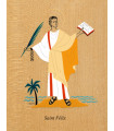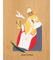 Saint Patron en laminage sur bois avec des encres garanties longue durée, finition acajou, protection anti-uv.