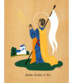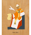 Saint Patron en laminage sur bois avec des encres garanties longue durée, finition acajou, protection anti-uv.