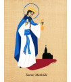 Saint Patron en laminage sur bois avec des encres garanties longue durée, finition acajou, protection anti-uv.