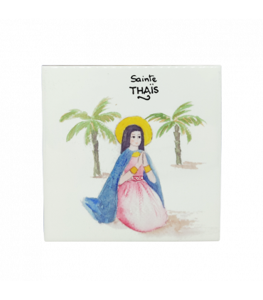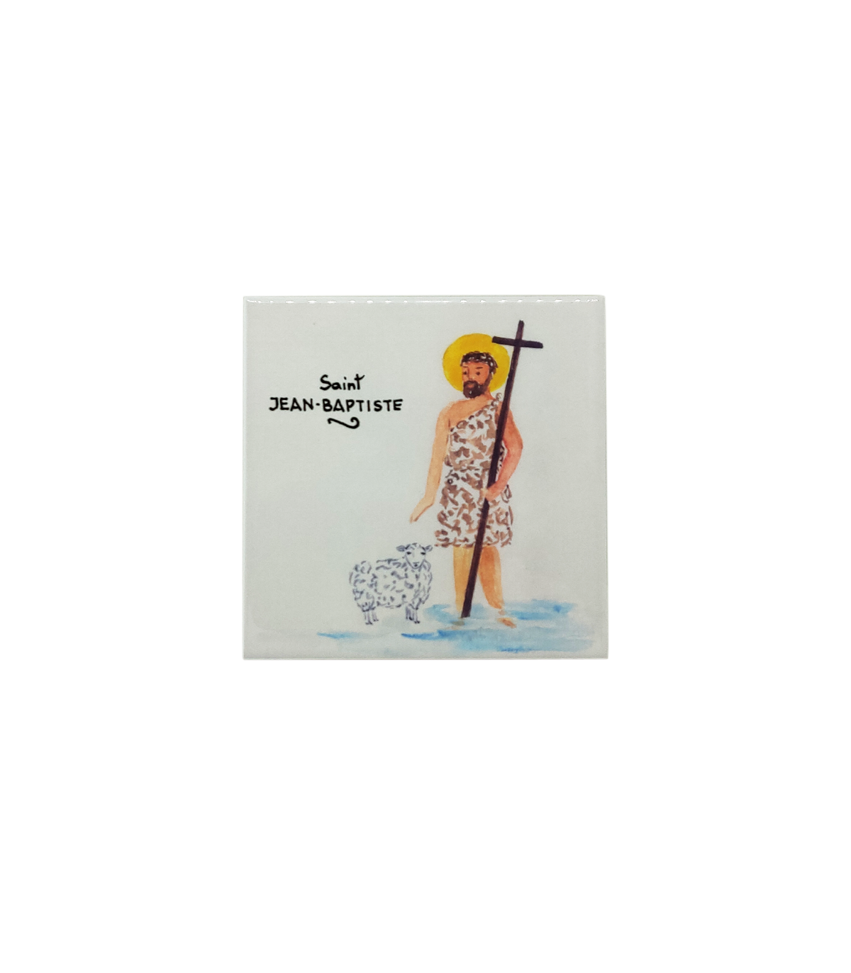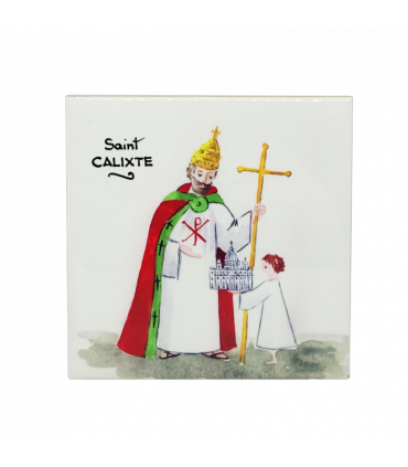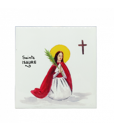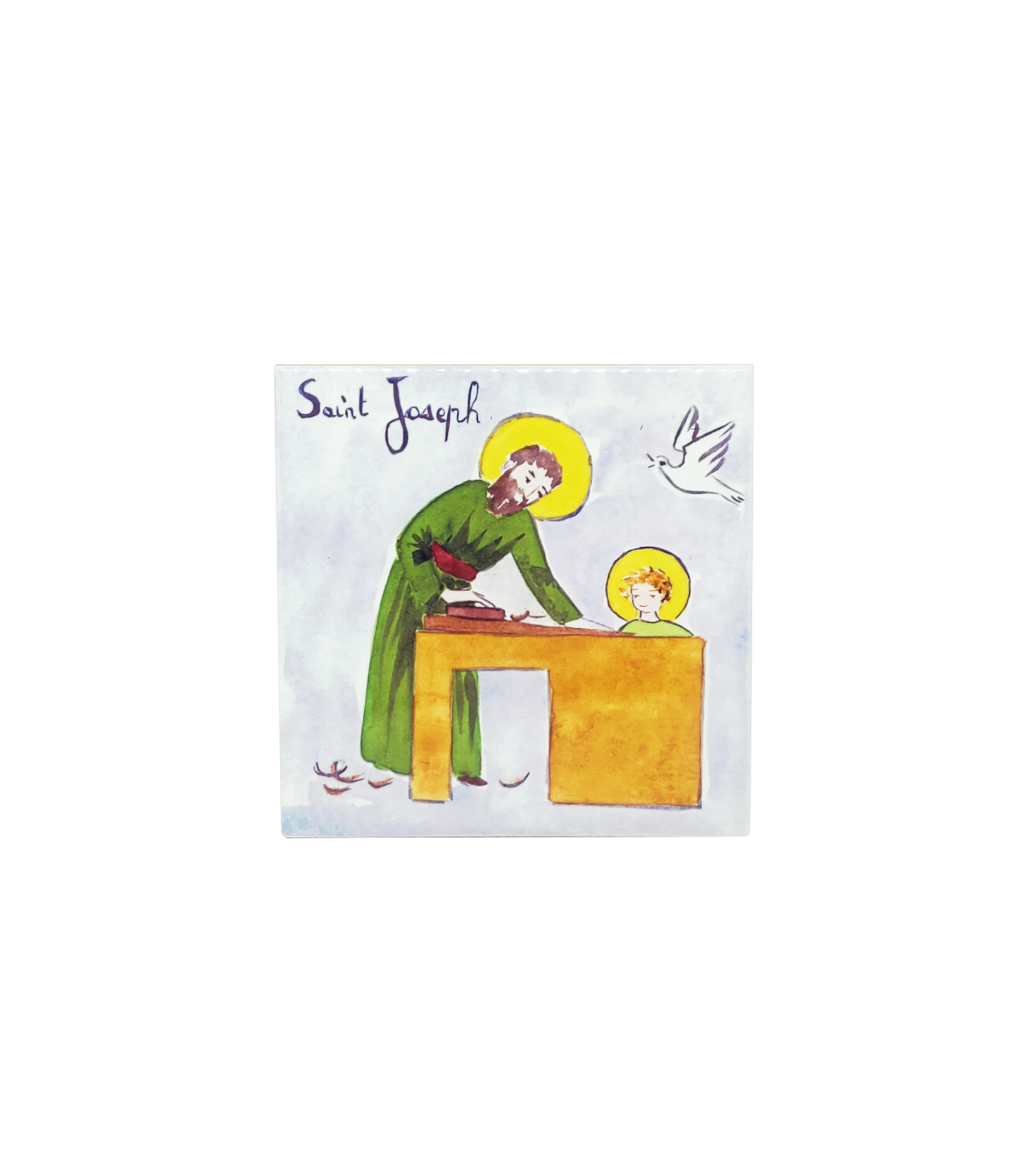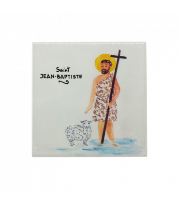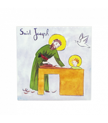 Les Saints Patrons, caractérisés par leur simplicité joyeuse, restent des cadeaux toujours appréciés pour tous les événements familiaux : naissance, baptême, communion... Les céramiques sont entièrement réalisées sur place par les moines de l'Abbaye. Au verso une courte vie du saint et une attache murale.