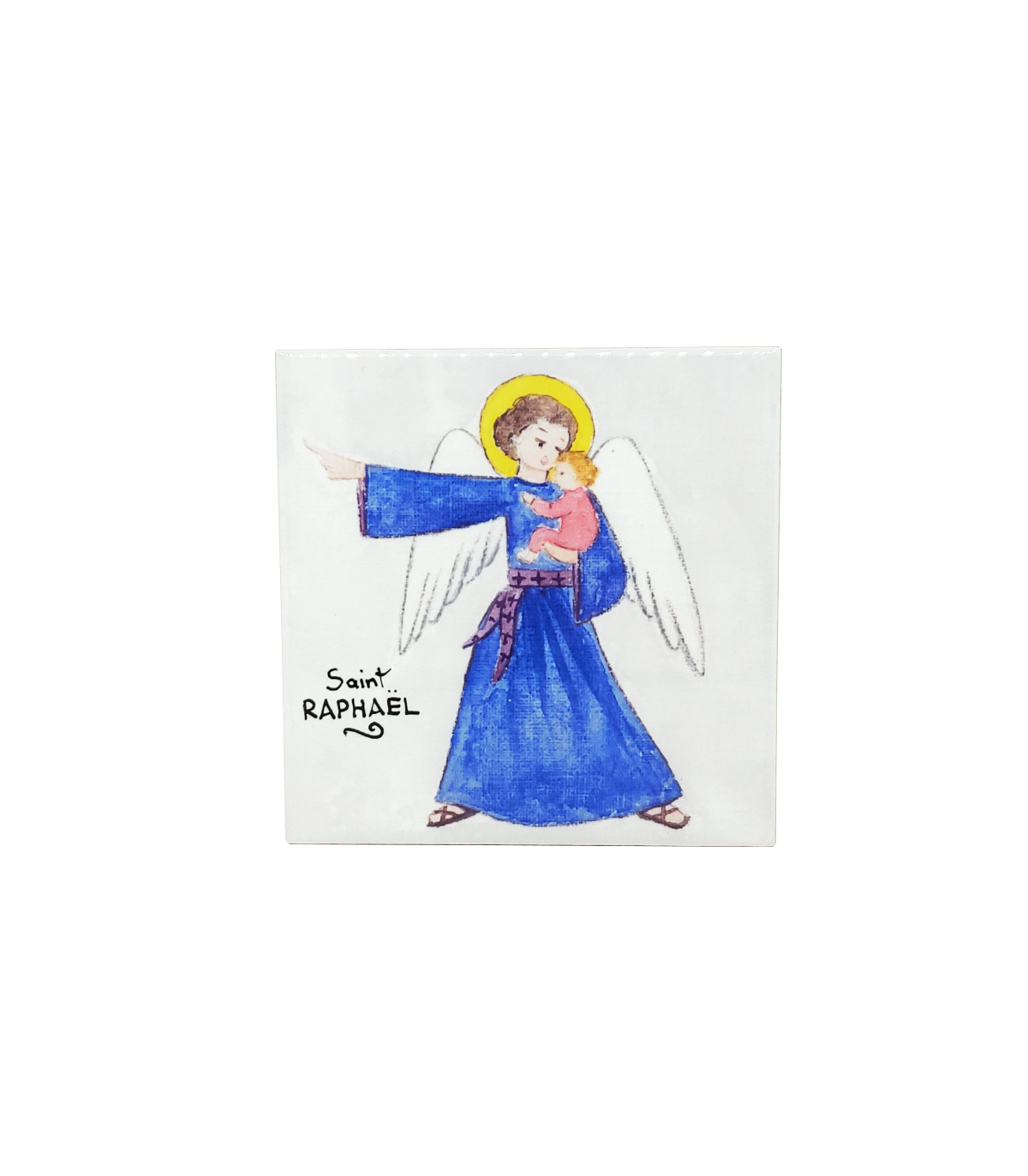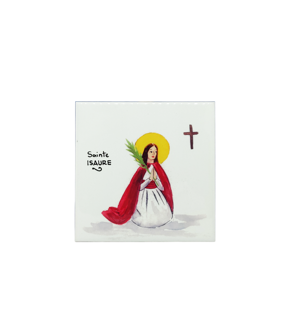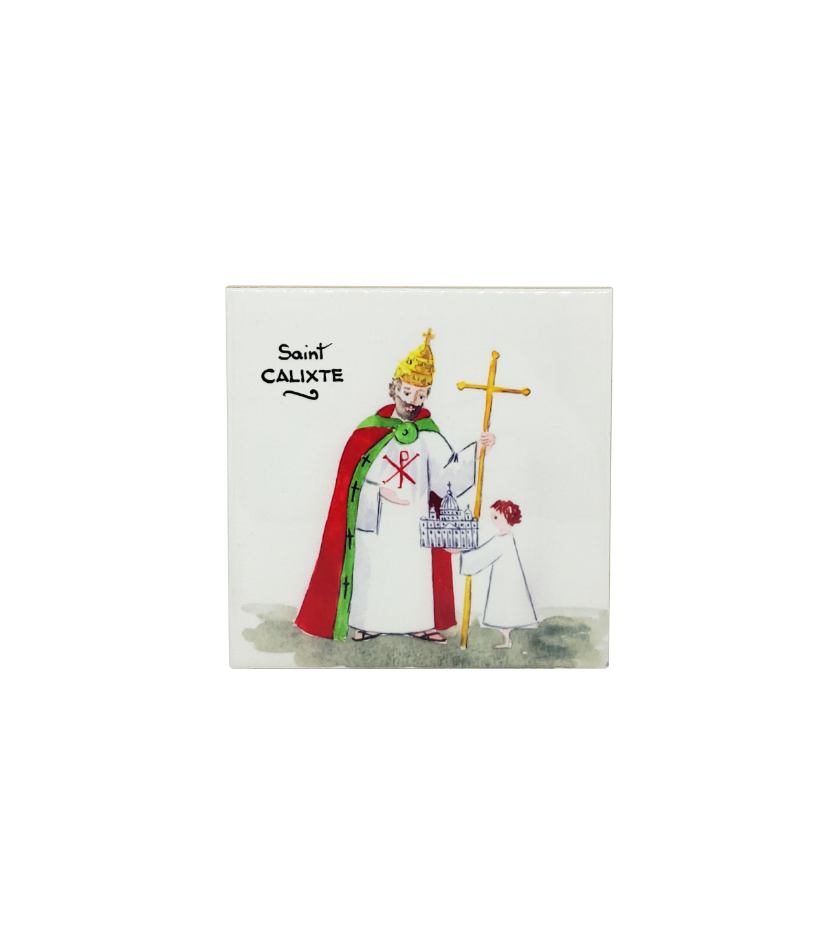 Les Saints Patrons, caractérisés par leur simplicité joyeuse, restent des cadeaux toujours appréciés pour tous les événements familiaux : naissance, baptême, communion... Les céramiques sont entièrement réalisées sur place par les moines de l'Abbaye. Au verso une courte vie du saint et une attache murale.