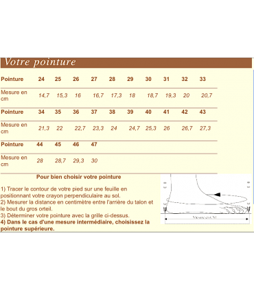 Semelle de 8 à 10mm en caoutchouc anti-dérapant. Talon de 12mm.
