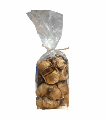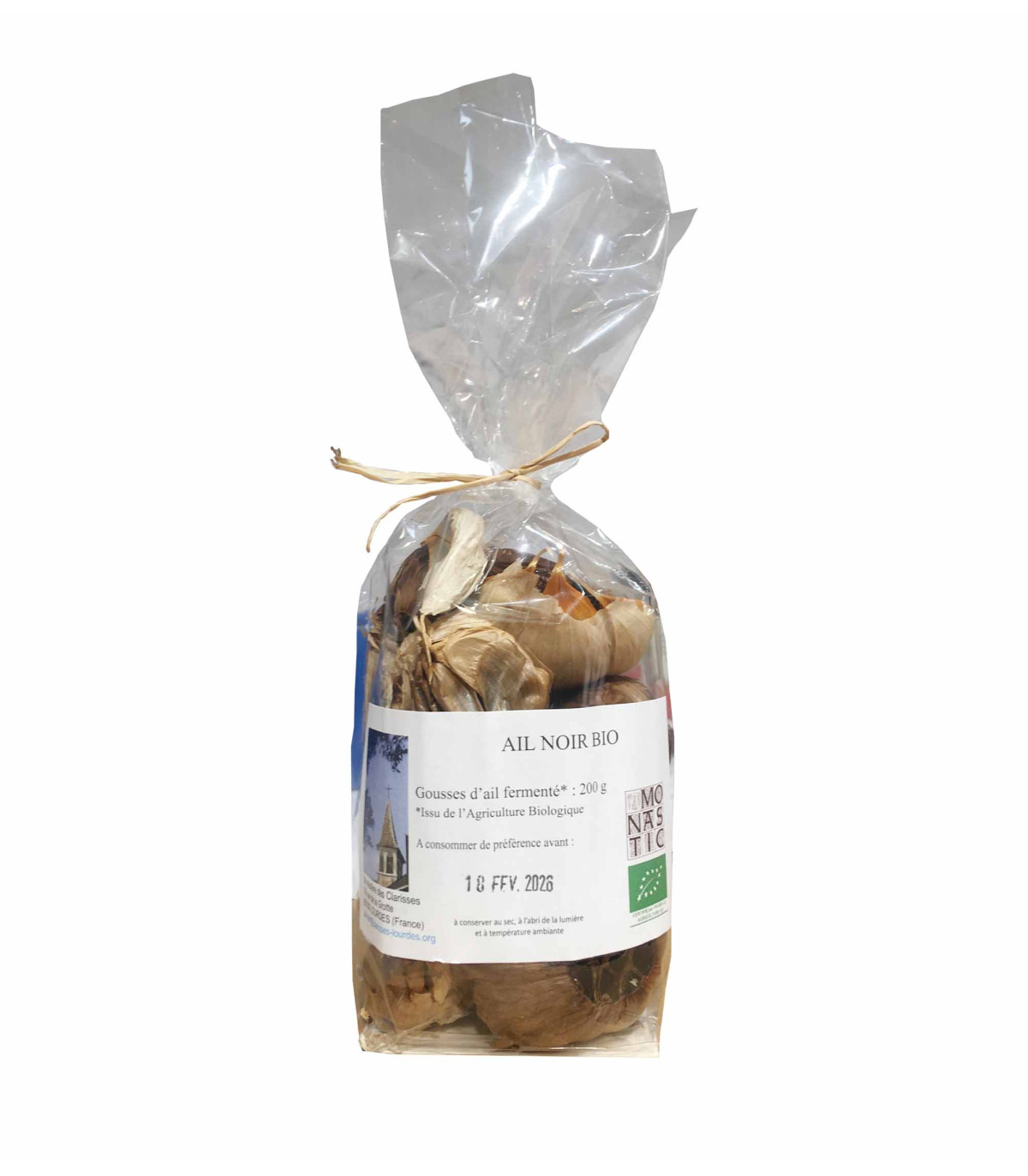 L'ail blanc bio est mis en fermentation à une température entre 65° et 75° et une atmosphère humide obtenue avec de l'eau de mer. L'ail prend alors une couleur charbon (d'où son nom Ail noir) et une texture fondante. Son parfum très délicat et son goût subtil en font un condiment très apprécié par les grands chefs.