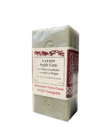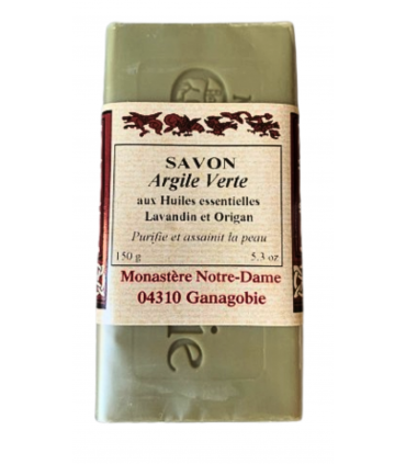 Savon à l'argile verte et aux huiles essentielles de Lavandin et d'Origan.