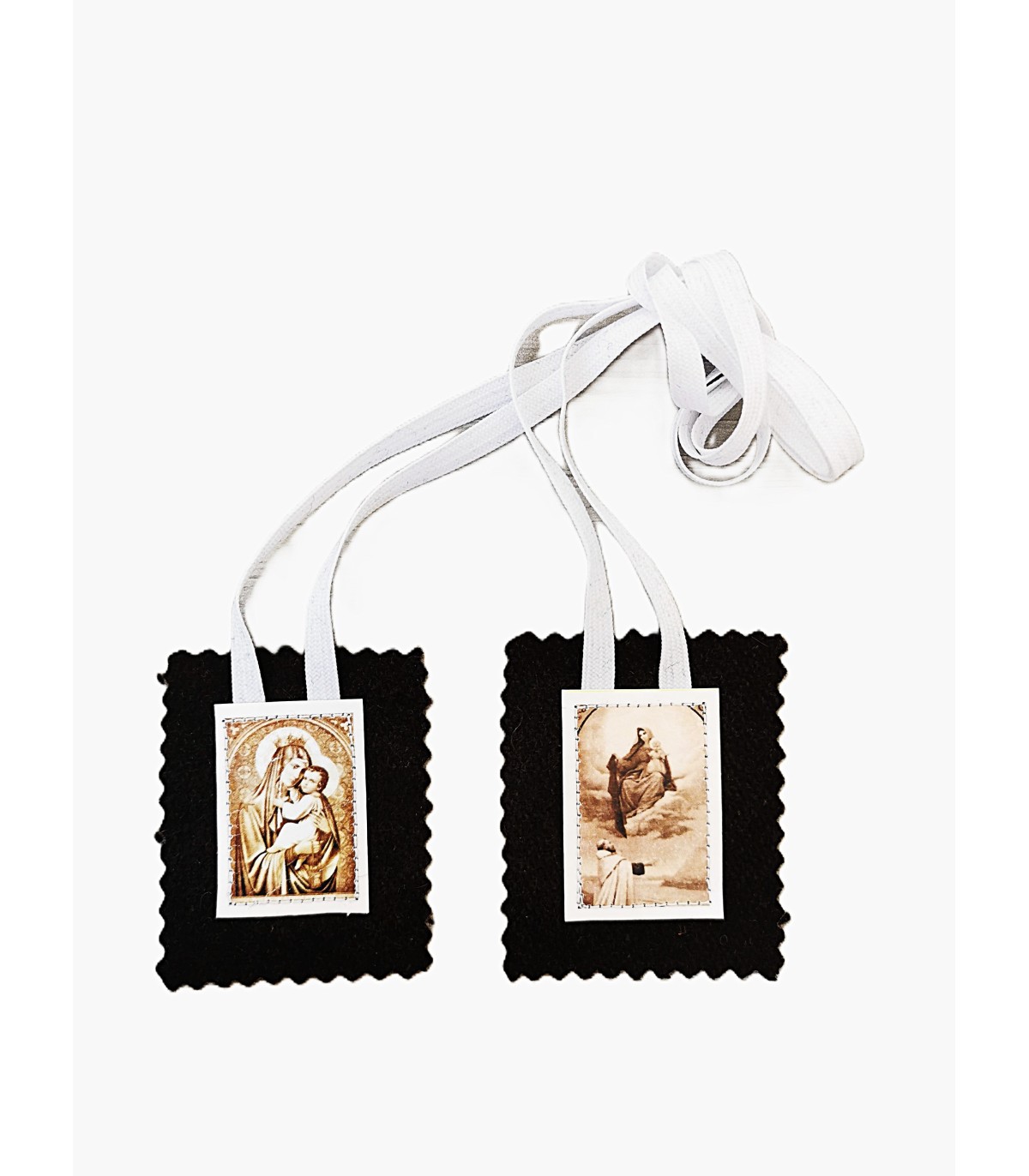 Le scapulaire du mont-Carmel est la réduction d'une partie de l'habit religieux des carmes, appelée scapulaire, qui se met par dessus la tunique ; ce scapulaire religieux des carmes, en tissu brun, est composé d'une large bande qui repose sur les épaules et descend par devant et par derrière jusqu'aux chevilles. Le mot scapulaire vient du latin scapulae qui signifie épaules.