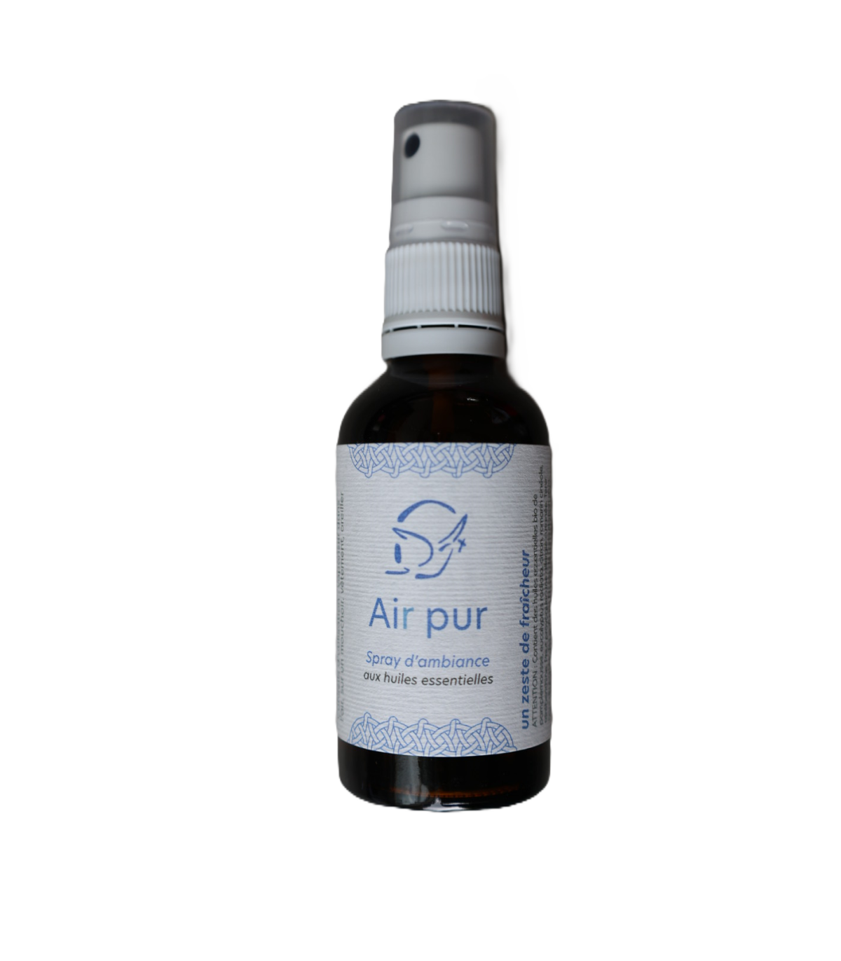 Spray aux huiles essentielles adapté pour chasser les mauvaises odeurs (toilette, cuisine, voiture...) ou assainir l'air en période de virus.