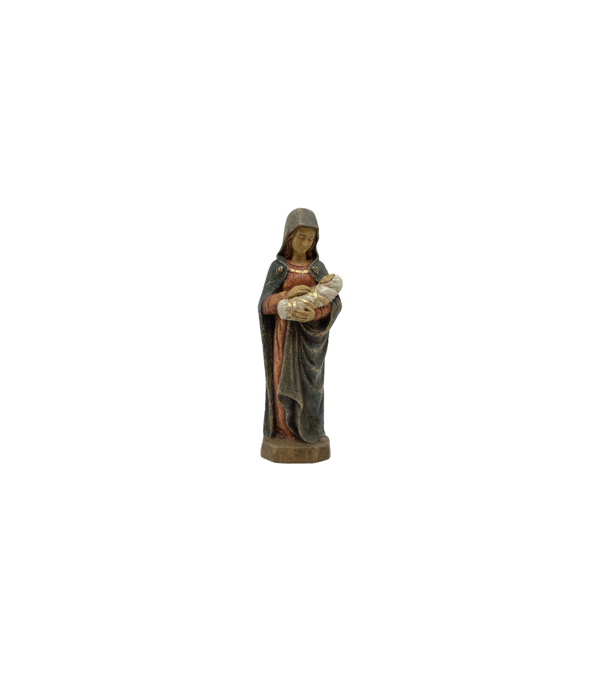 Statuette de la Vierge à l'enfant en bois polychrome.
