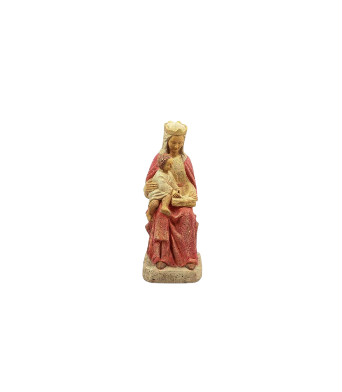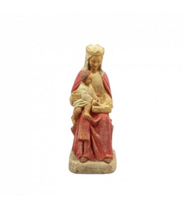Statue de la Vierge Marie enseignant son Fils avec un livre.