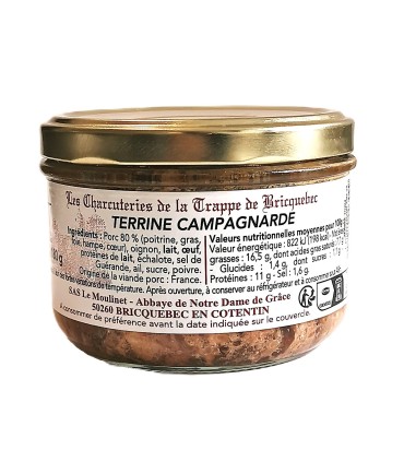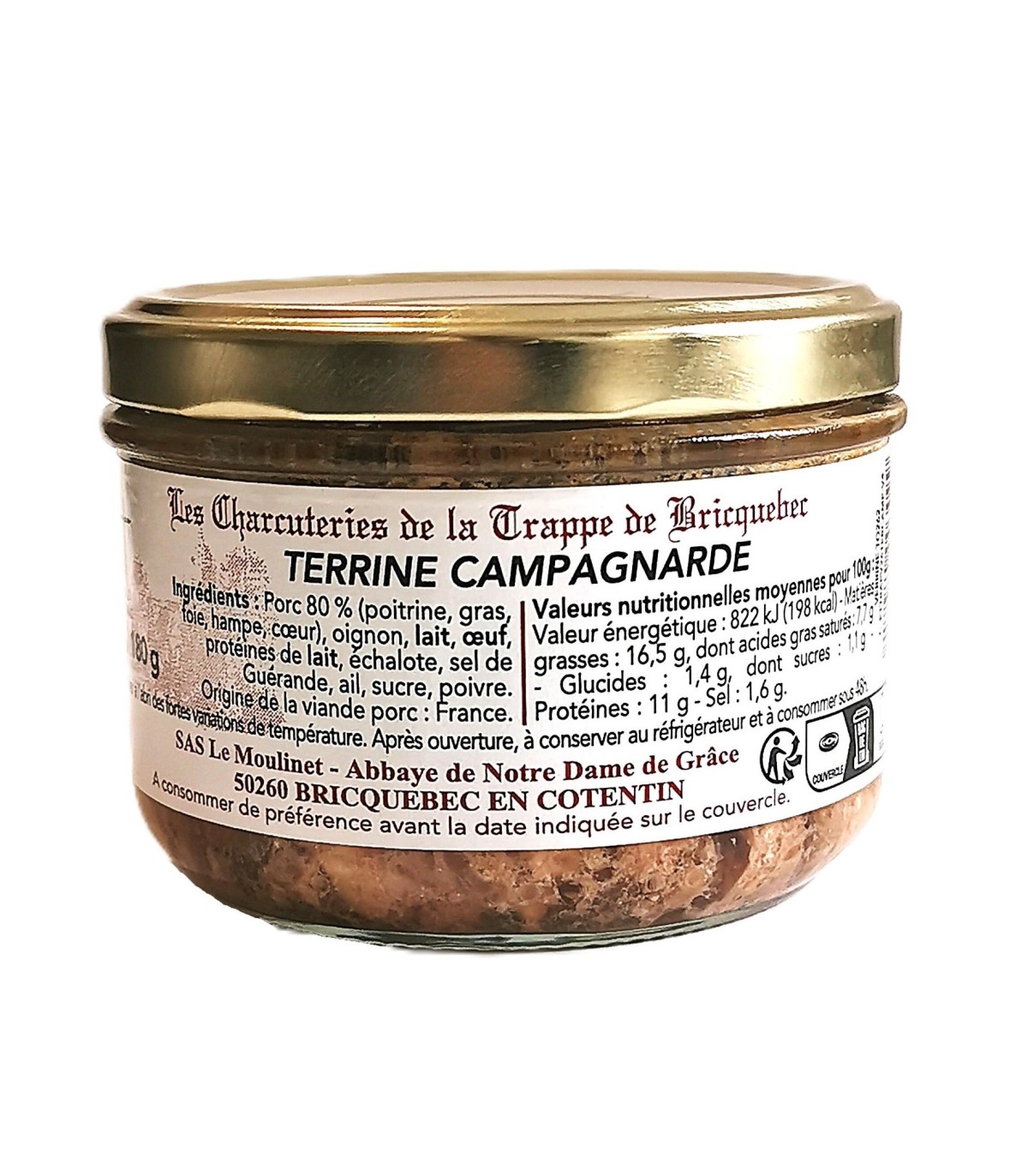Cette terrine campagnarde complètera avec gourmandise vos buffets froids. Elle est fabriquée avec tout le savoir faire traditionnel des moines.