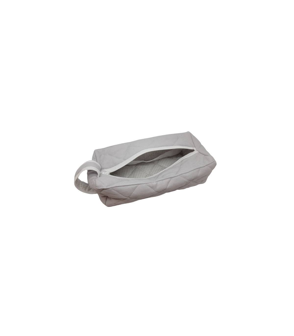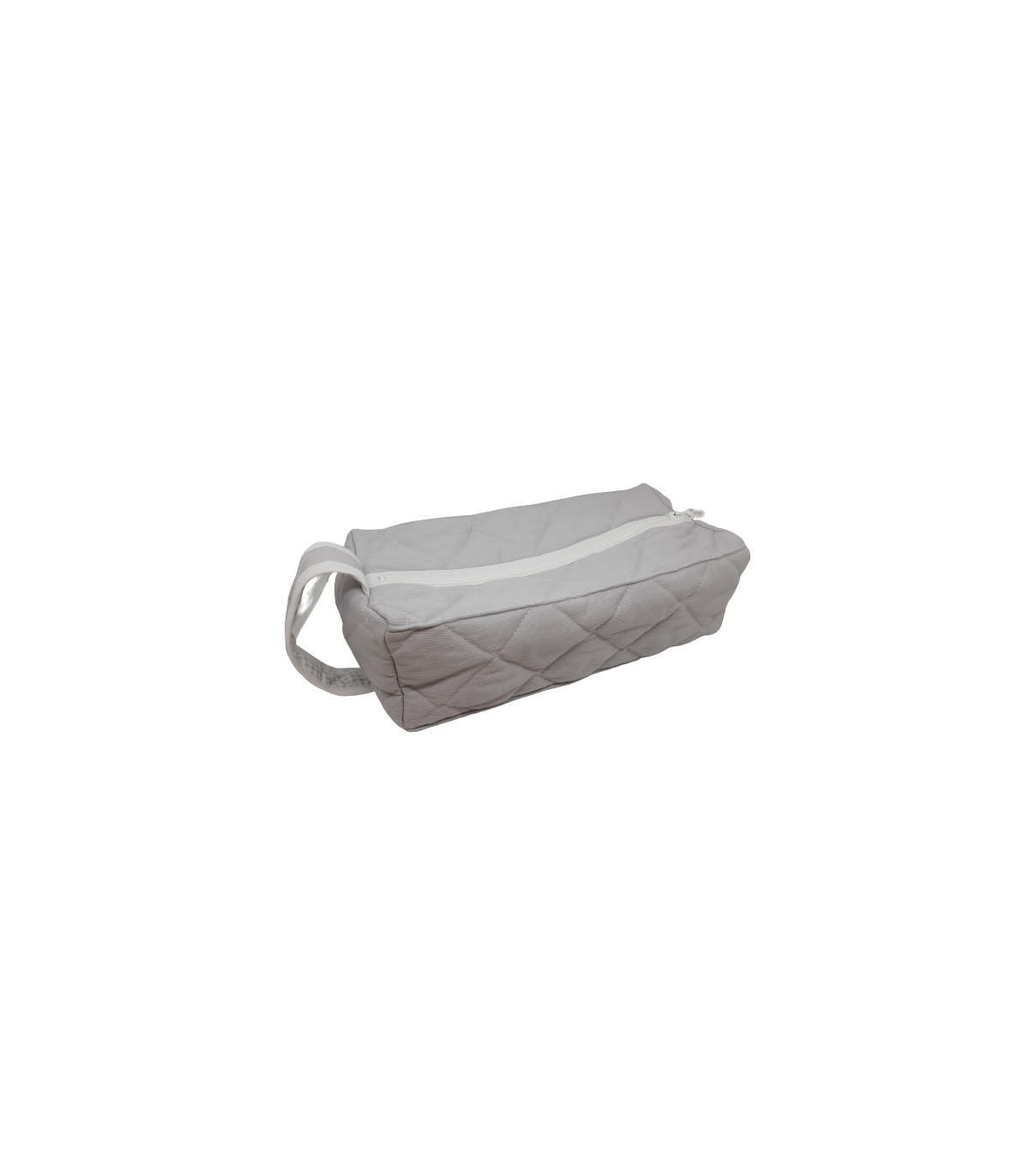 Trousse de forme rectangulaire et matelassée grise à manche  dimensions : 29 cm x 15 cm x 10 cm